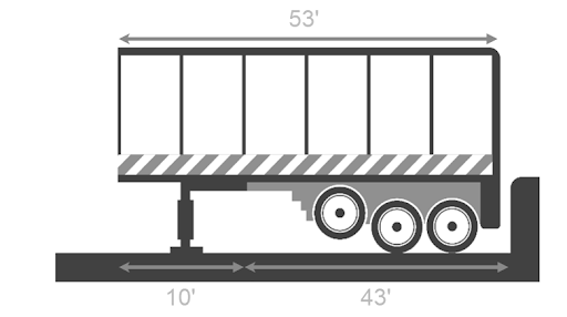 The configuration of the area required to maneuver and position trailers into place is called the apron space. Planning apron space requires recognizing trailer movement and the amount of room it takes to achieve that movement.