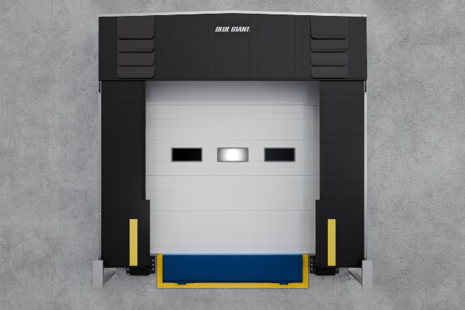 Designed to suit door openings up to 10' W x 10' H (3,048 mm x 3,048 mm), the Blue Giant Stationary Shelter uses flexible fabric curtains to enclose a trailer’s top and sides while providing full access to the interior.Wear flaps reinforce the head curtain at contact areas, and the bottom 24" (610 mm) of the side curtain are reinforced with double fabric layers for added durability. Replaceable foam draft pads seal additional gap between the trailer and the building.