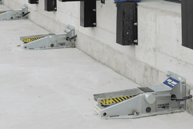 The StrongArm SVR303 hydraulic vehicle restraint is fully submersible: NEMA6 IPS sensor and double-acting hydraulic cylinders keep the unit operating safely and efficiently during wet or flooded conditions.